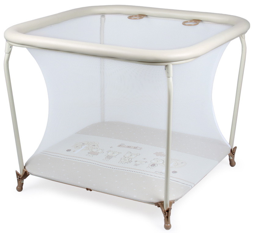 Манеж полностью не токсичен. Манеж оснащен 4 ручками – кольцами, помогающими ребенку вставать на ноги. Гарантом устойчивости манежа служат 4 блокирующие устройства. Сетка имеет особое плетение, обеспечивающее максимальную безопасность. Её прозрачность обеспечивает удобство присмотра за ребёнком. Для изготовления манежа используются экологически чистые материалы и антитоксичные покрытия.