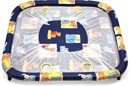- обивка манежа изготовлена из пищевого полиэтилена,достаточно прочная и приятная на ощупь.