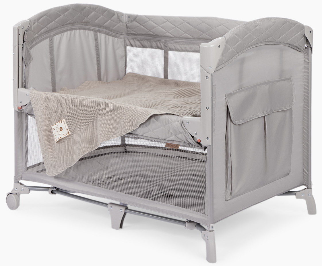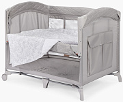 Манеж украшен сказочными орнаментами и делает игры в нём особенно захватывающими. Низкий вес, компактный размер в разложенном виде и минимальный в сложенном делают манеж идеальным для поездок, а также квартир с небольшой площадью. Манеж легко превращается в комфортную кроватку. Стенка манежа опускается наполовину и позволяет установить его рядом с кроватью родителей для спокойного сна малыша и мамы. Колеса помогают перемещать манеж-кроватку по дому. Для безопасности острые углы отсутствуют, а верхняя часть - мягкая, сшита из легкой в уходе и водостойкой оксфордской ткани. С манежем малыш везде будет чувствовать себя как дома и в безопасности, а неповторимый дизайн станет отличным дополнением любого интерьера.
