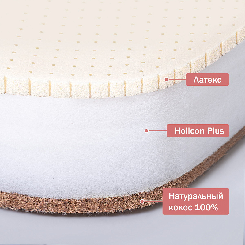 В основе матраса высокопрочный материал Hollcon Plus 95 мм, который обладает антибактериальными свойствами, не имеет запаха и не теряет форму с течением эксплуатации.