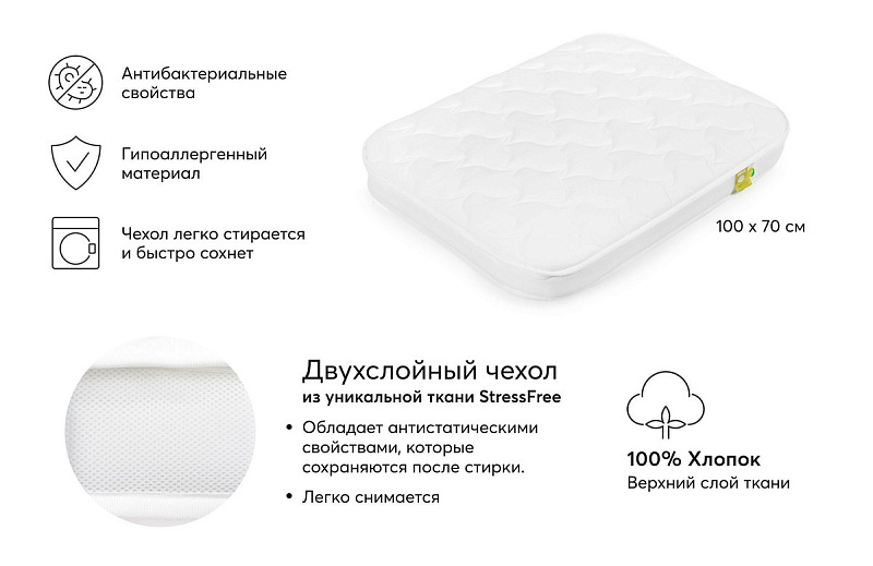 Стеганный двухслойный чехол матраса – съемный, легко стирается в машинке и быстро сохнет.