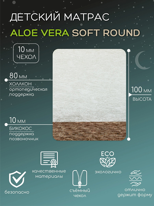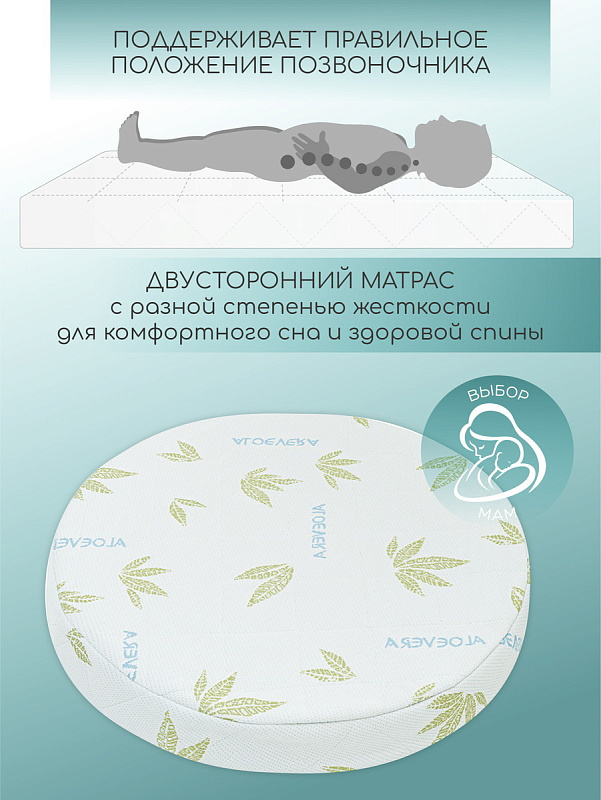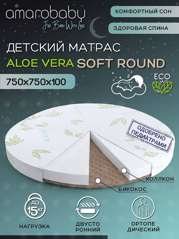 Детский матрас LunaTown Aloe Vera Soft Round 75x75х10 см.