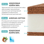 Основа матраса выполнена из инновационного наполнителя Airoflex-cotton. Материал прекрасно держит форму, он упругий и долговечный, а натуральный хлопок в составе улучшает его вентиляцию.