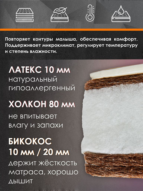 Детский матрас Woodix Cloud сочетает в себе лучшие ортопедические характеристики, экологичность, долгий срок службы. Наполнение матраса произведено по принципу бутерброда, где каждый слой в комбинации с соседним усиливает ортопедический эффект.