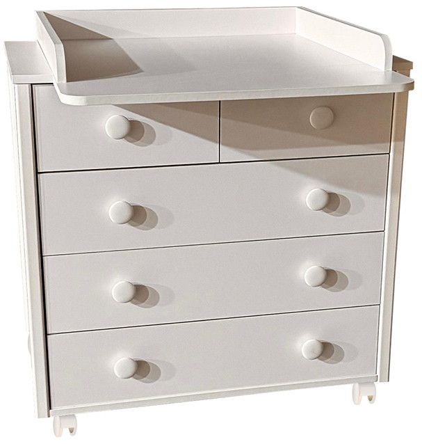 Детский пеленальный комод "Маленький принц" от Антел – это уютное гнёздышко для вашего новорождённого. С первых дней жизни он станет верным помощником в заботе о малыше. Пять вместительных ящиков, скользящих плавно и бесшумно благодаря шариковым телескопическим направляющим, скроют все необходимые вещи. Съемная пеленальная столешница позволит с комфортом проводить гигиенические процедуры. Корпус из ЛДСП, дополненный изящными вставками из массива дерева, покрытыми сверкающим лаком, придают комоду нежность и очарование. А колёсики обеспечат мобильность и лёгкость перемещения по комнате.
