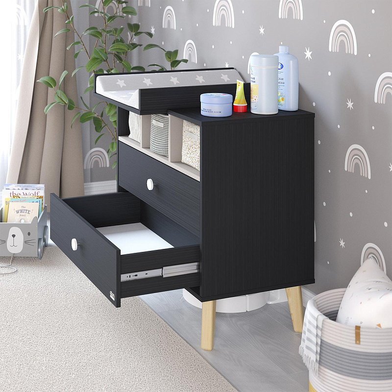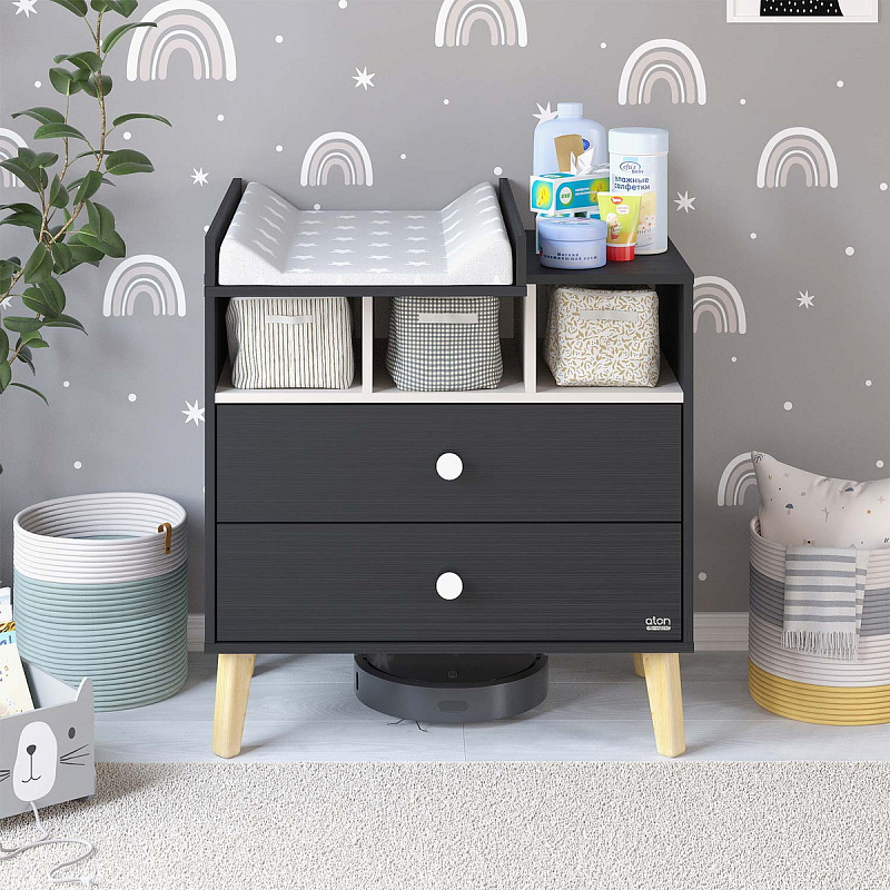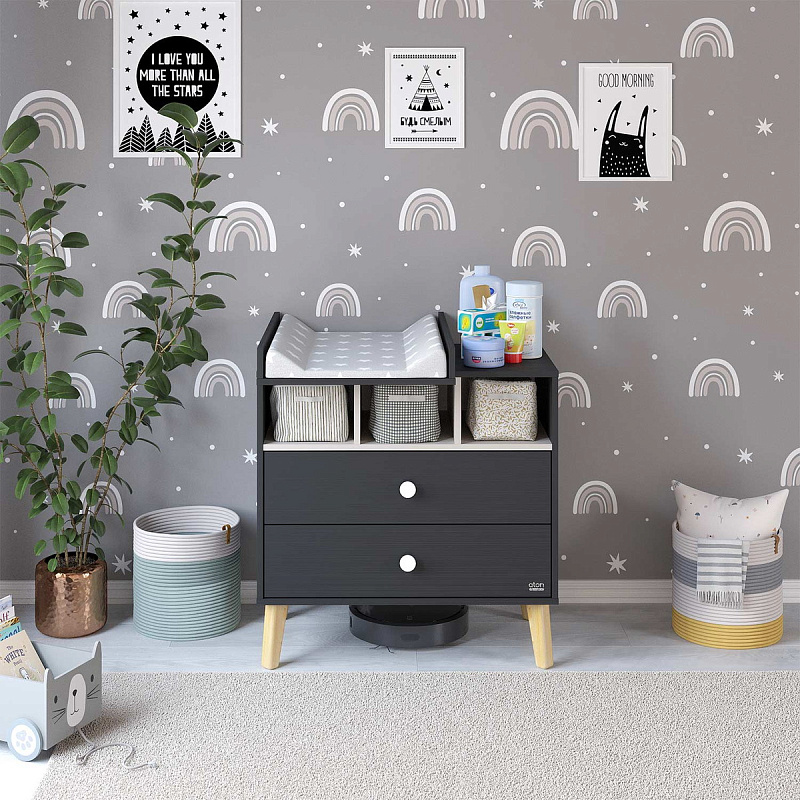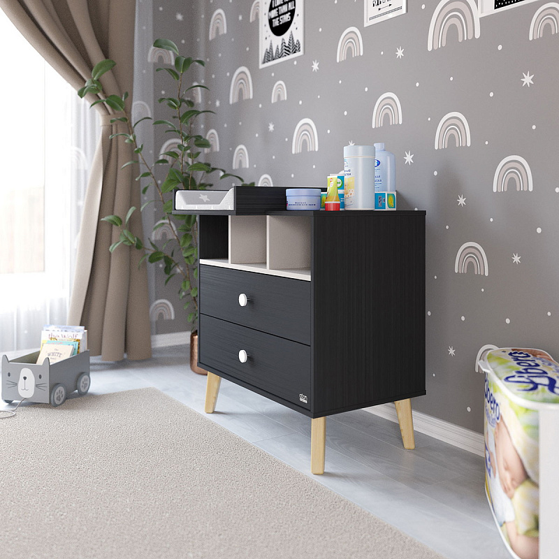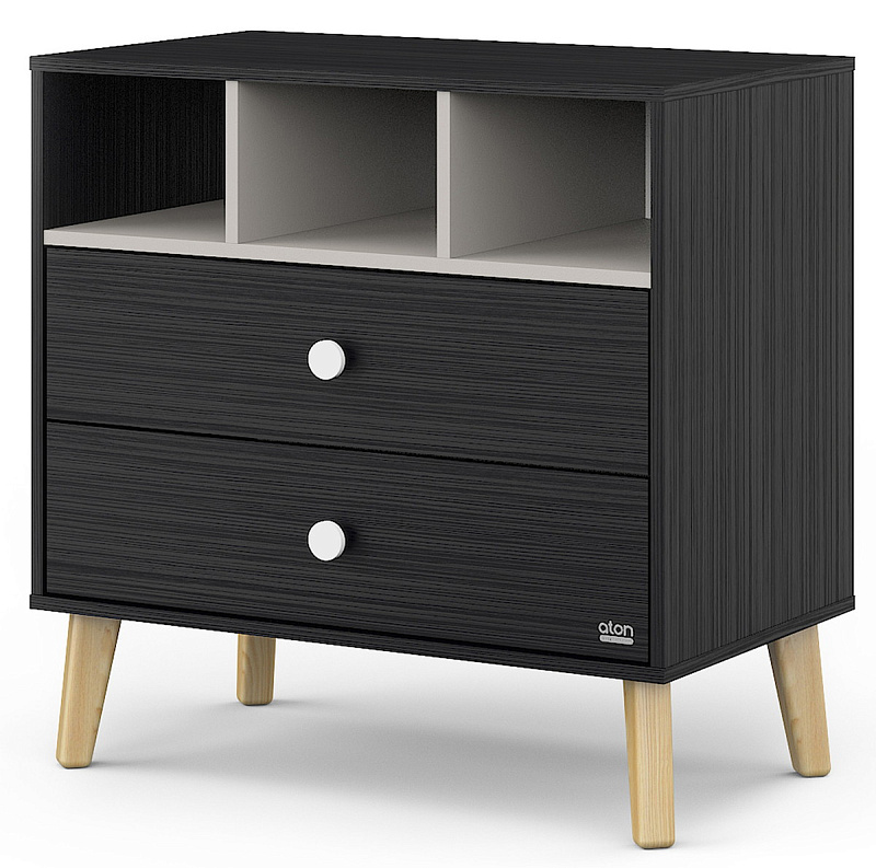 Детский пеленальный комод Атон Benny с нишами 800/2 ЛДСП черный-кашемир