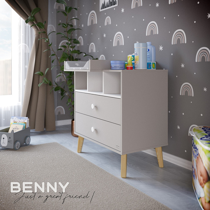 Детский пеленальный комод Атон Benny с нишами 800/2 ЛДСП кашемир-белый премиум
