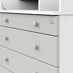 Элегантный, выполненный в современном стиле и удобный пеленальный комод, в комбинациях контрастных оттенков благородной древесины с нежными, приятными на ощупь, белыми или бежевыми фасадами. В комоде используется пеленальный столик с простым и надежным, скрытым механизмом раскладывания. Есть отделение рядом с пеленальным столиком для средств по уходу за малышом в быстром доступе. Комод очень вместительный благодаря пяти ящикам, которые установлены на надежные шариковые направляющие бесшумного хода. Нижний ящик большей глубины, а верхний с органайзером для удобства сортировки детских вещей (6 отделений).