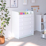 Элегантный, выполненный в современном стиле и удобный пеленальный комод, в комбинациях контрастных оттенков благородной древесины с нежными, приятными на ощупь, белыми или бежевыми фасадами. В комоде используется пеленальный столик с простым и надежным, скрытым механизмом раскладывания. Есть отделение рядом с пеленальным столиком для средств по уходу за малышом в быстром доступе. Комод очень вместительный благодаря пяти ящикам, которые установлены на надежные шариковые направляющие бесшумного хода. Нижний ящик большей глубины, а верхний с органайзером для удобства сортировки детских вещей (6 отделений).