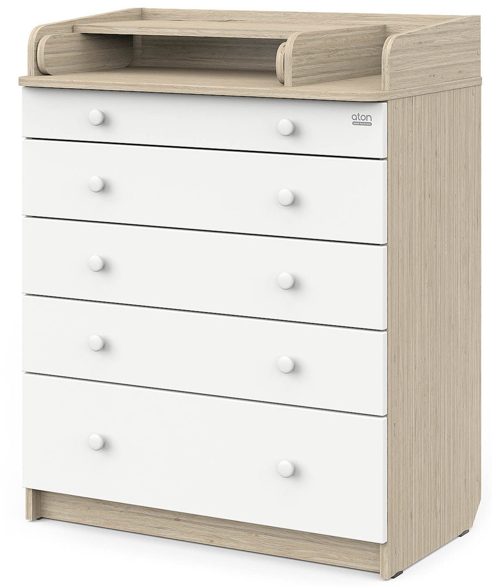 Элегантный, выполненный в современном стиле и удобный пеленальный комод, в комбинациях контрастных оттенков благородной древесины с нежными, приятными на ощупь, белыми или бежевыми фасадами. В комоде используется пеленальный столик с простым и надежным, скрытым механизмом раскладывания. Есть отделение рядом с пеленальным столиком для средств по уходу за малышом в быстром доступе. Комод очень вместительный благодаря пяти ящикам, которые установлены на надежные шариковые направляющие бесшумного хода. Нижний ящик большей глубины, а верхний с органайзером для удобства сортировки детских вещей (6 отделений).