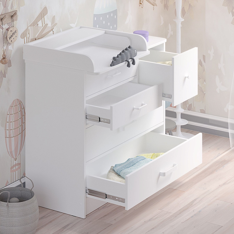 - Размер комода с установленным пеленальным столиком (глубина/ширина/высота): 551(798)х922х958 мм;