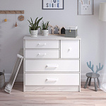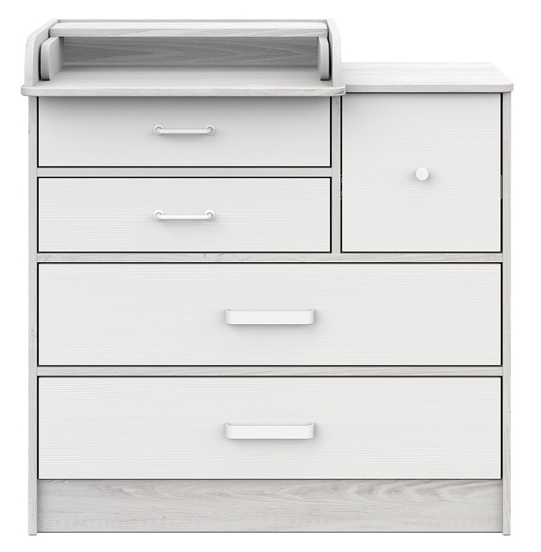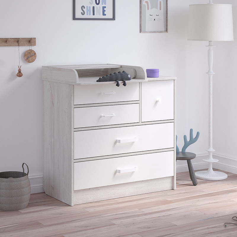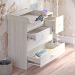 Расположенный справа от пеленальной поверхности ящик позволяет держать под рукой все необходимые вещи для ухода за новорожденным малышом. Углы пеленальной доски и столешницы скруглены для безопасности малыша. Этот комод является прекрасным примером сочетания практичности и элегантности. Разные цветовые решения фасадов позволят выбрать свой идеальный комод, который прекрасно впишется в любой интерьер детской.