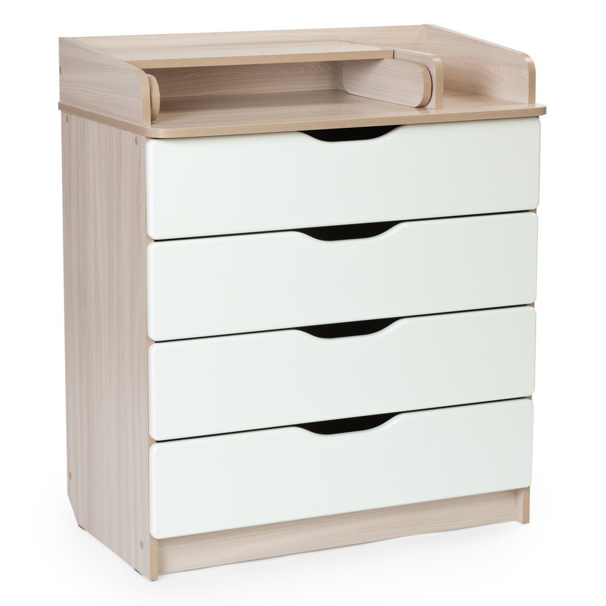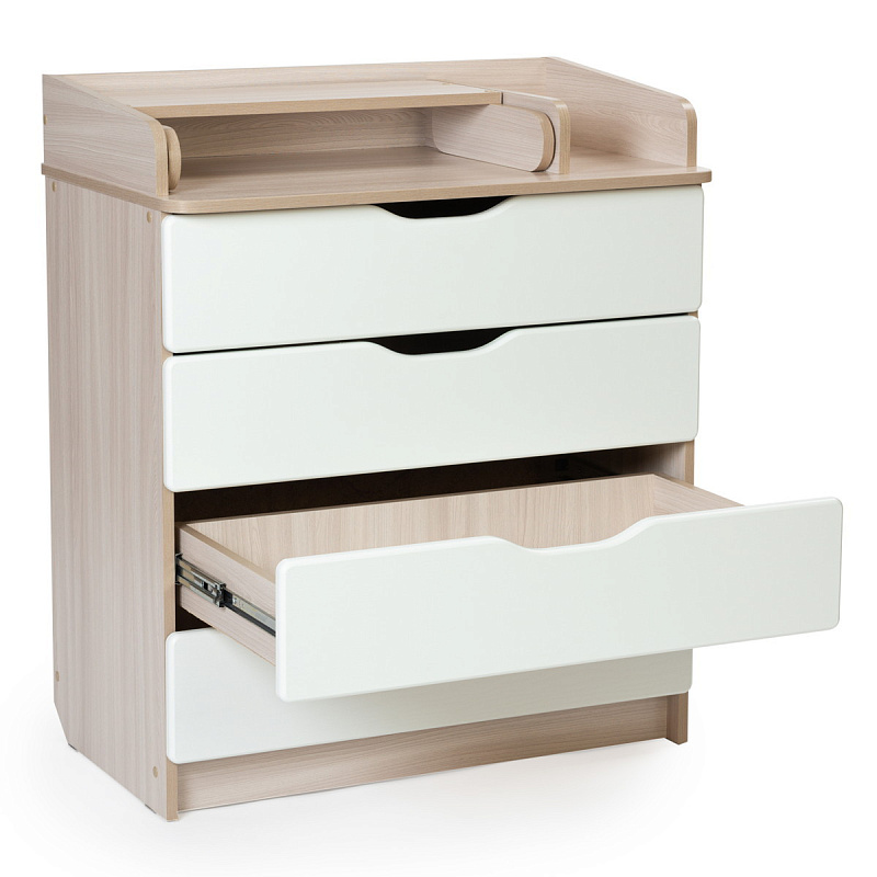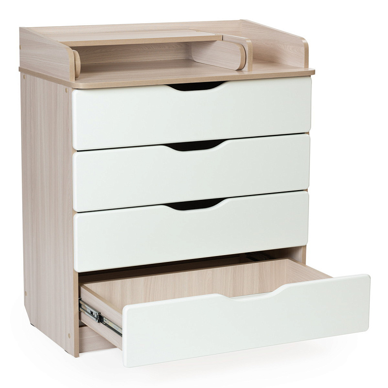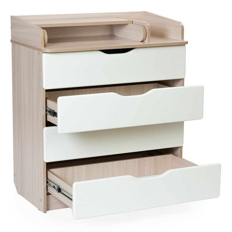 помощник становится детский комод Bebizaro. Комод можно разместить в любом удобном месте. Это незаменимый предмет в доме, выступающий не только в роли шкафа для детских вещей, но и как пеленальный столик и место для переодевания ребёнка. Удобный и практичный комод с 4-я ящиками позволит значительно сэкономить пространство и разместить все необходимое для вашего ребёнка, детские вещи, подгузники, средство для гигиены. Комод оборудован пеленальным столиком с простым и надежным механизмом раскладывания, 4-е вместительных ящика.