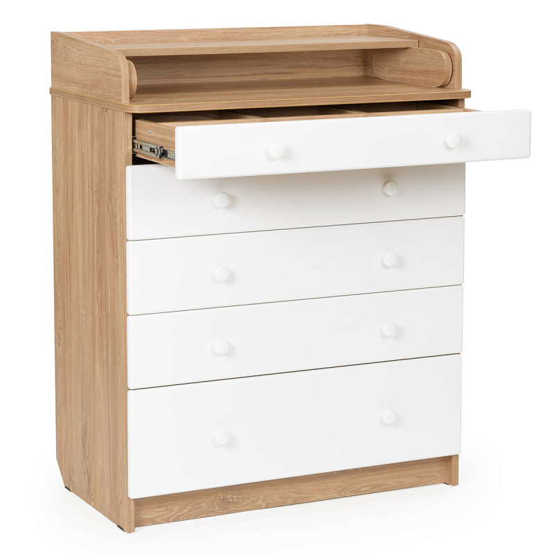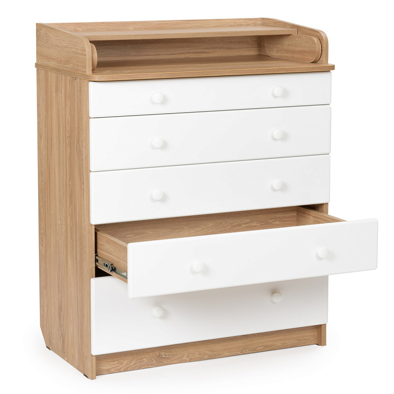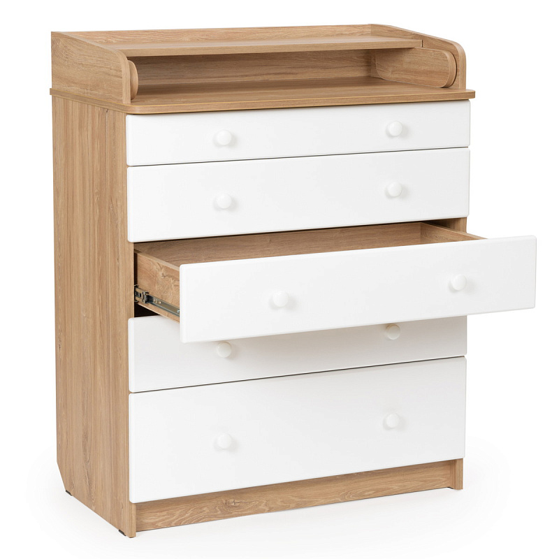 Детский комод BEBIZARO MODERN NEW (5 ящиков) - Каждый родитель знает, при рождении ребёнка на сколько важно иметь под рукой детские вещи и принадлежности. В таком случае их незаменимый помощник становится детский комод BEBIZARO. Комод BEBIZARO можно разместить в любом удобном месте. Это незаменимый предмет в доме, выступающий не только в роли шкафа для детских вещей, но и как пеленальный столик и место для переодевания ребёнка. Удобный и практичный комод с 5-я ящиками позволит значительно сэкономить пространство и разместить все необходимое для вашего ребёнка, детские вещи, подгузники, средство для гигиены. Комод оборудован пеленальным столиком с простым и надежным механизмом раскладывания, 5-ть вместительных ящика.