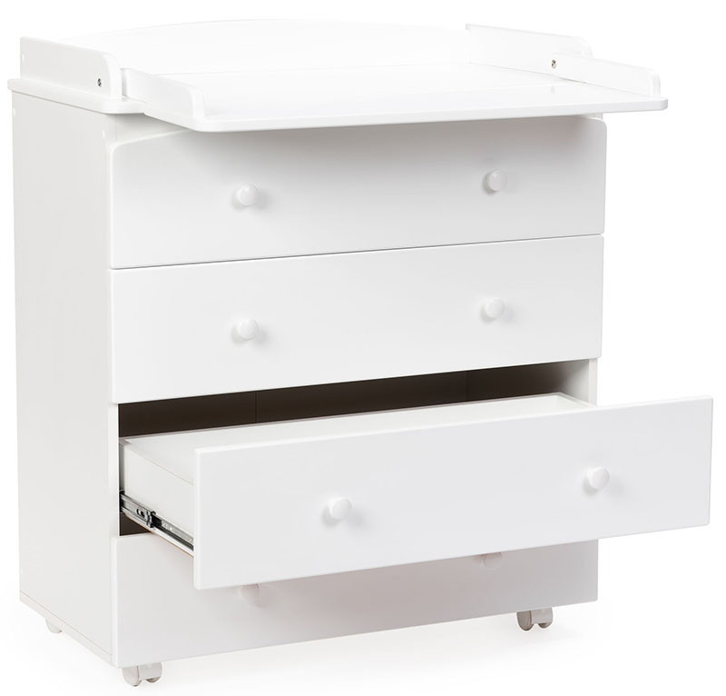 Каждый родитель знает, при рождении ребёнка на сколько важно иметь под рукой детские вещи и принадлежности. В таком случае их незаменимый помощник становится детский комод Bebizaro. Комод можно разместить в любом удобном месте так как имеет 4-е поворотных колеса со стопором. Это незаменимый предмет в доме, выступающий не только в роли шкафа для детских вещей, но и как пеленальный столик и место для переодевания ребёнка. Удобный и практичный комод с 4-я ящиками позволит значительно сэкономить пространство и разместить все необходимое для вашего ребёнка, детские вещи, подгузники, средство для гигиены.