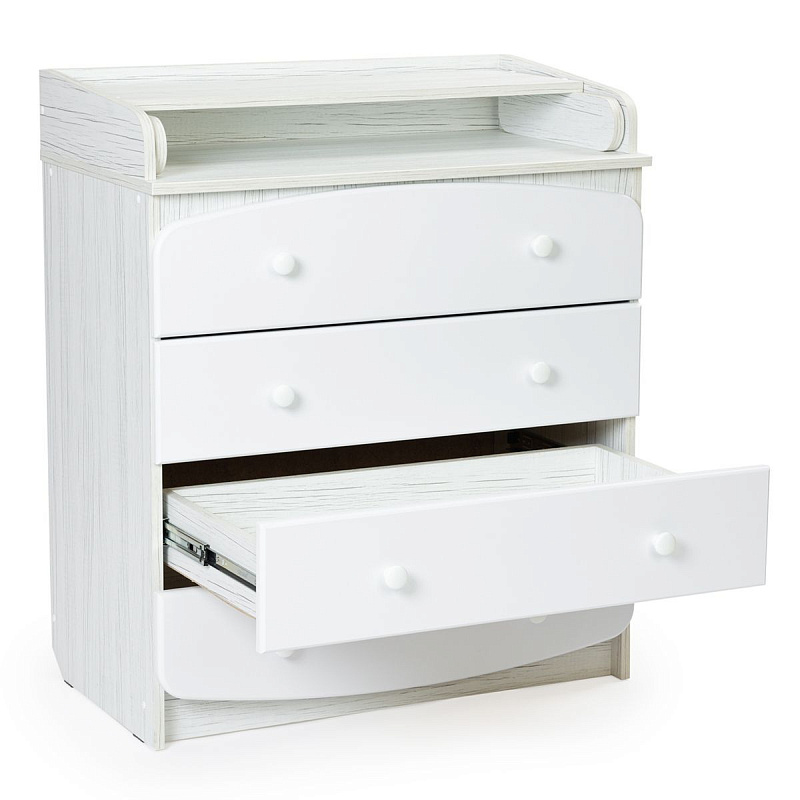 Это незаменимый предмет в доме, выступающий не только в роли шкафа для детских вещей, но и как пеленальный столик и место для переодевания ребёнка.
