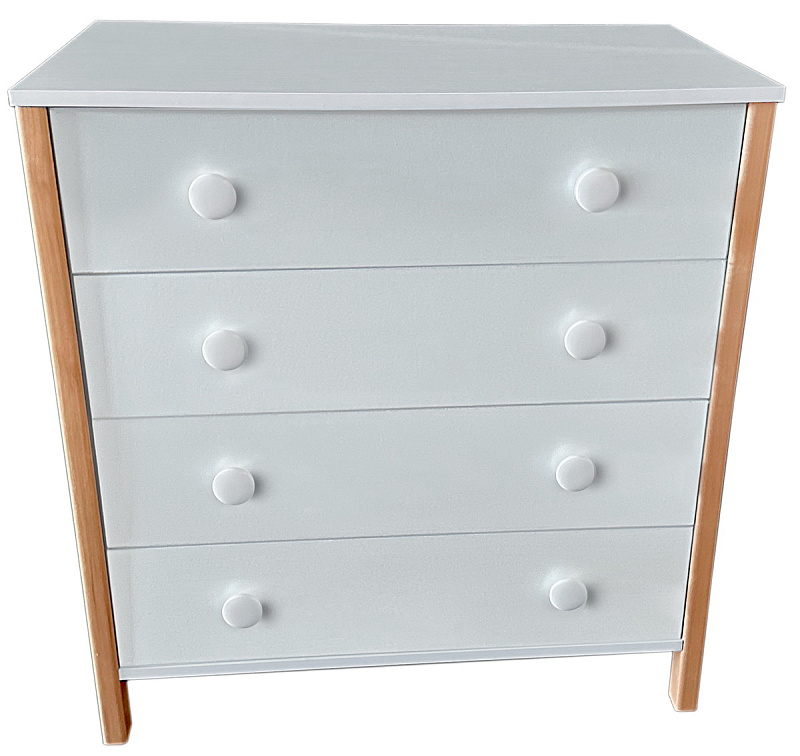 Вместительные ящики устанавливаются на современные и надежные шариковые направляющие, благодаря которым они выдвигаются мягко и бесшумно, что безусловно никак не потревожит Вашего малыша. Также в закрытом положении предусмотрена фиксация ящиков, что предотвращает их самопроизвольное выкатывание.