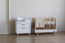 Комод выполнен из МДФ и массива ясеня, при производстве используется высококачественная пленка. Дизайн идеально сочетается с кроваткой этой же серии и гармонично вписывается в интерьер детской.