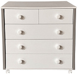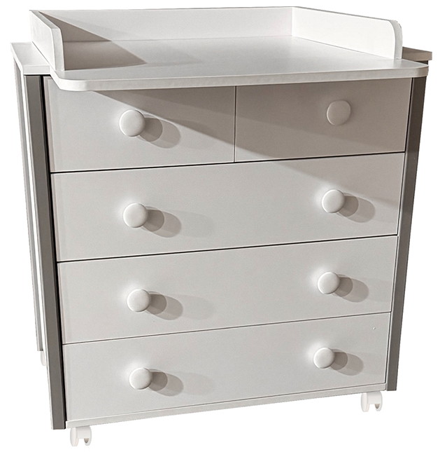 Созданный для нежных объятий и трепетной заботы с самого рождения, этот комод станет верным помощником в уходе за вашим малышом. Плавное скольжение ящиков, оснащенных шариковыми телескопическими направляющими, позволит бесшумно достать все необходимое, не тревожа чуткий сон крохи. Съемная пеленальная столешница превращает комод в удобное место для переодевания и гигиенических процедур, а когда малыш подрастет, легко демонтируется, превращая его в стильный элемент детской комнаты. Пять вместительных ящиков надежно сохранят все детские вещи, от пеленок до любимых игрушек. Корпус и фасад из ЛДСП гарантируют долговечность и простоту в уходе, а изящные вставки из массива дерева, покрытые лаком, добавляют тепла и уюта. Легкое перемещение комода обеспечивают колесики, позволяя с легкостью менять обстановку в комнате. "Кедр Valencia" – это не просто мебель, это островок любви и комфорта для вашего ребенка.