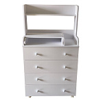 Комод Victoria Compact с дополнительной надстройкой с полкой для детских принадлежностей станет функциональным и незаменимым предметом интерьера детской комнаты. Комфортный пеленальный столик с откидной крышкой и ограничительными бортиками, обеспечит комфортное и безопасное проведение всех гигиенических процедур. Рядом с пеленальным столиком есть место для детских принадлежностей, которые будут всегда под рукой. Вместительные ящики устанавливаются на современные и надежные шариковые направляющие, благодаря которым они выдвигаются мягко и бесшумно, что безусловно никак не потревожит Вашего малыша. Также в закрытом положении предусмотрена фиксация ящиков, что предотвращает их самопроизвольное выкатывание. Комод укомплектован колесами для удобного перемещения по комнате.
