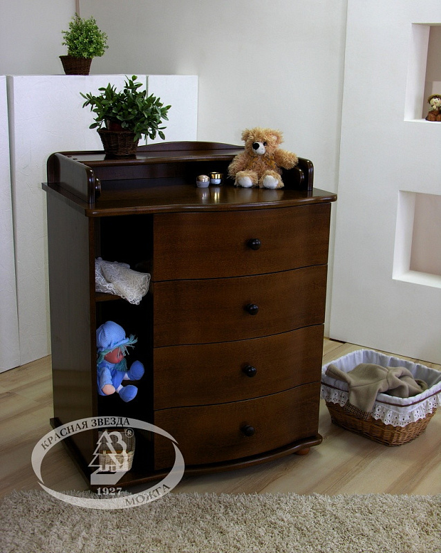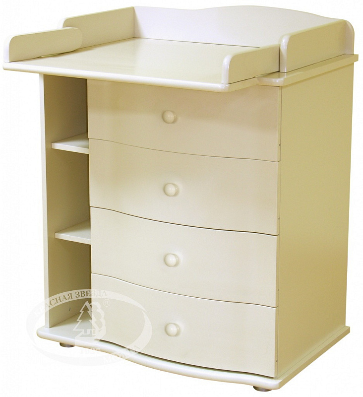 - Красная Звезда С-421 имеет большой откидной пеленатор с мягким матрасиком. Пеленатор имеет защитные бортики, которые исключают риск скольжения настила и тем самым гарантируют безопасность ребенку и спокойствие родителям.