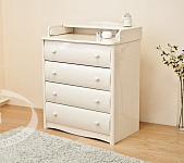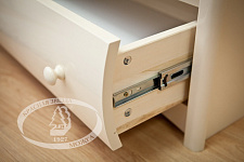 Комод оснащен откидной полкой, что обеспечивает безопасное пеленание малыша. В 4 глубоких ящиках на обновленных шариковых направляющих поместятся все вещи ребенка. Эксклюзивный дизайн гнутых панелей комода - настоящая роскошь для изысканного интерьера. Материалы: массив березы; передние панели ящиков- гнутоклееная заготовка (береза). Отделка производится красителями на водной основе, применяются безопасные полиуретановые лаки и эмали.