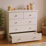 Практичность и удобство: просторные ящики для хранения детских вещей, а съемная пеленальная доска позволяет использовать комод долгие годы.