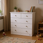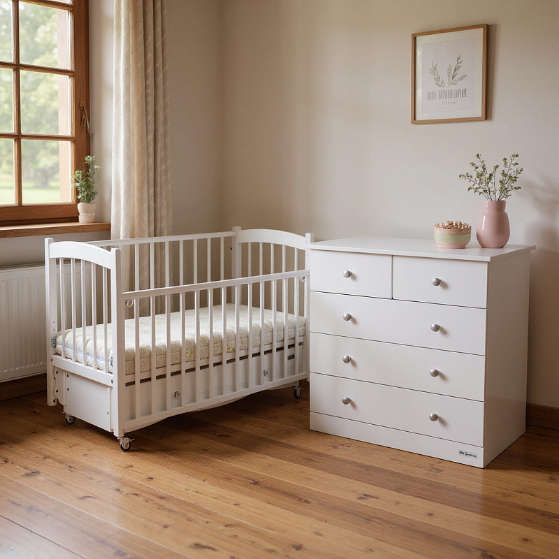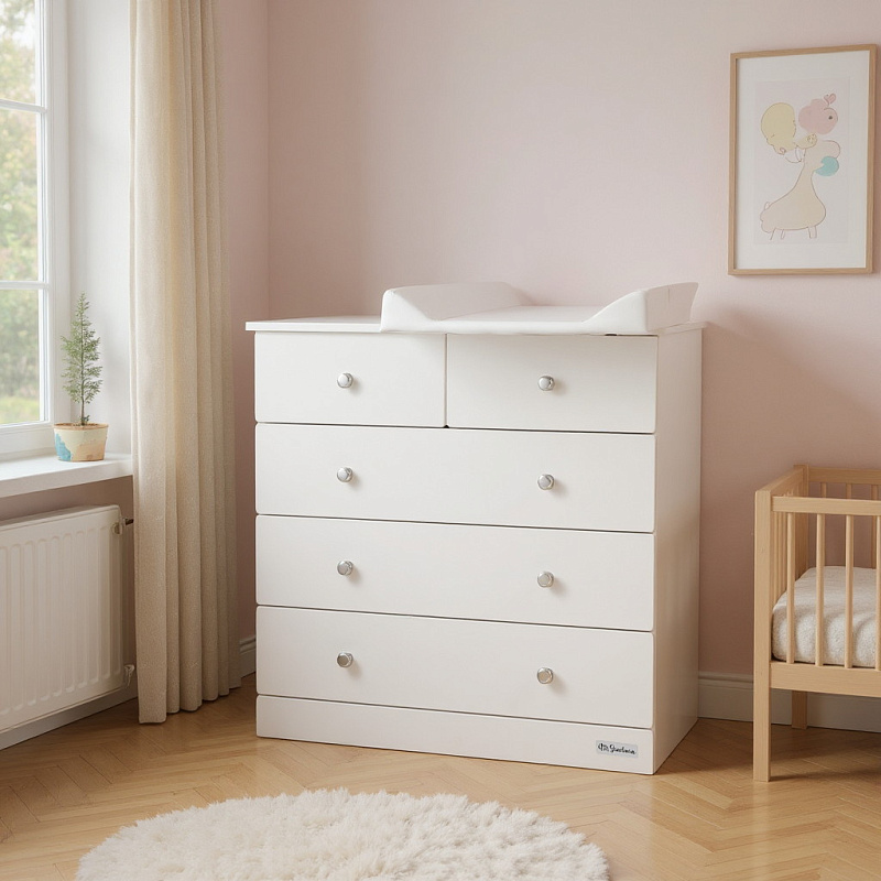 Этот практичный и элегантный комод станет верным помощником для родителей, а его универсальный лаконичный дизайн органично впишется в любой интерьер – от классического до современного. В комплекте – мягкая накладная пеленальная доска для комфортного ухода за малышом, которая обеспечит удобство во время смены подгузников и ухода за малышом.