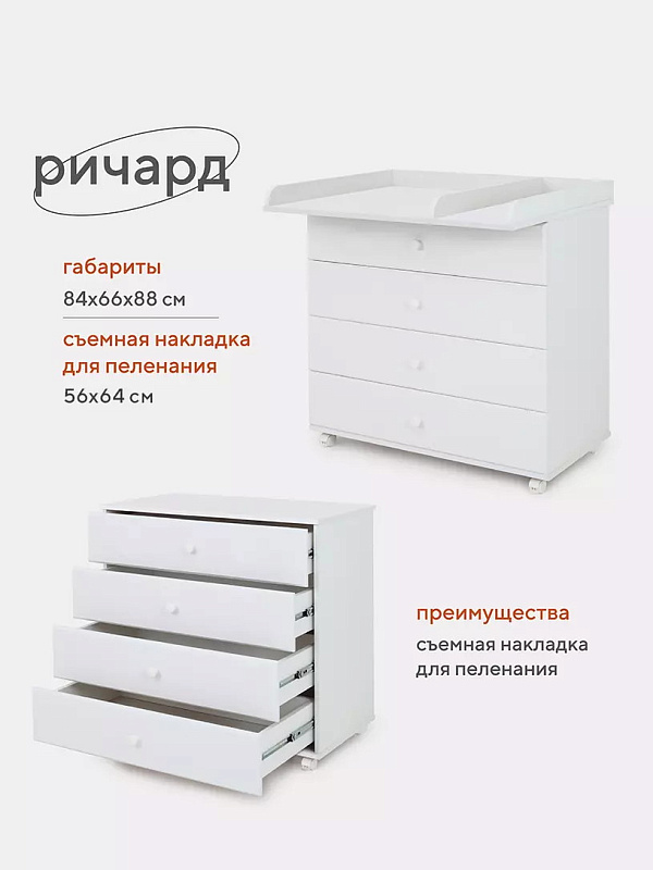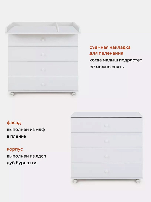 - функциональный пеленальный комод, выполненный в строгом, лаконичном стиле, моментально наполнит уютом детскую комнату и прослужит вам долгие годы