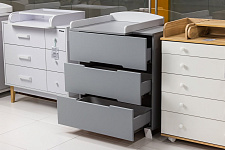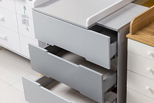 Для удобства пользования комодом при уходе за новорожденным на него можно установить специальную пеленальную накладку. Это позволяет превратить комод в практичную и удобную пеленальную станцию. Комод Vikalex Норман оснащен тремя просторными ящиками, которые имеют выемки вместо традиционных ручек.