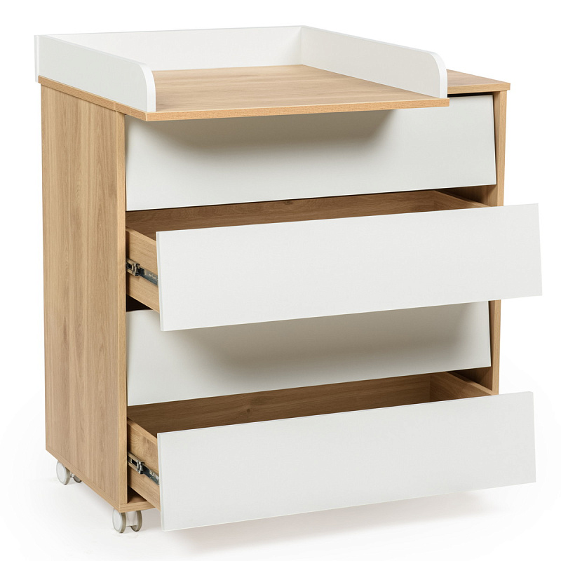 Особая забота о будущих мамах и их малышах проявляется в дополнительной функциональности комода "Vikalex Wood". Он оснащен съемным бортиком, который легко превращает его в полноценный пеленальный столик. Благодаря этому удобному решению, вы сможете менять памперсы и ухаживать за малышом на комфортной высоте, не нагибаясь и не напрягая спину.