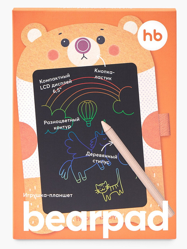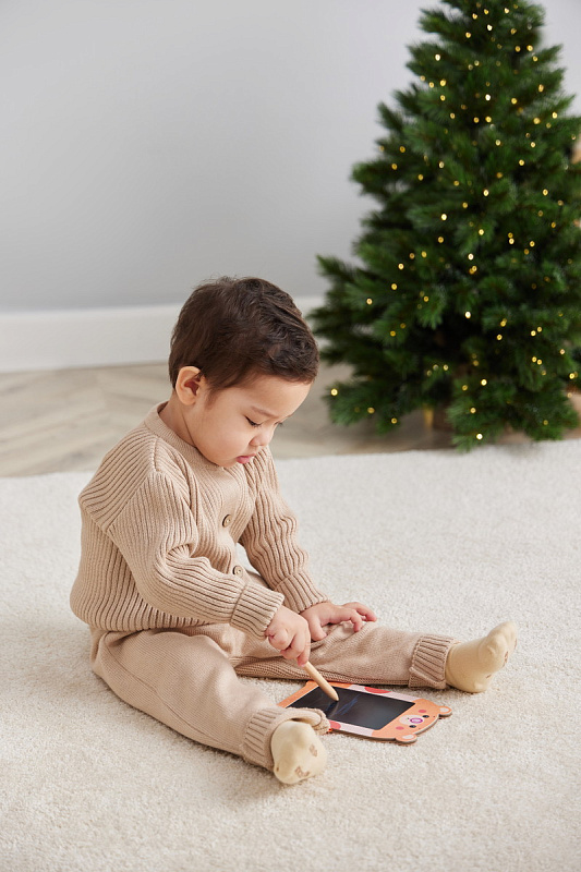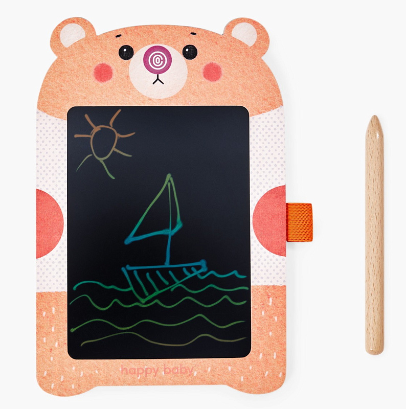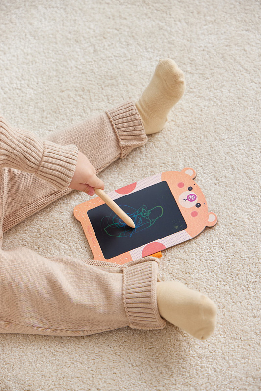 Планшет позволит рисовать без карандашей и бумаги. Его удобно брать с собой в дорогу, чтобы завлечь ребенка и сохранить чистым все вокруг. LCD-экран помещен в приятный на ощупь и легкий корпус из дерева. Рисование производится стилусом, для хранения которого предусмотрено гнездо сбоку, благодаря чему ручка не потеряется. Игрушка имеет компактный размер, удобный для детей. Такой аксессуар можно положить в сумку, чтобы увлечь малыша изучением букв или цифр в очереди к врачу или во время поездок в транспорте. Милый дизайн понравится и мальчикам, и девочкам.