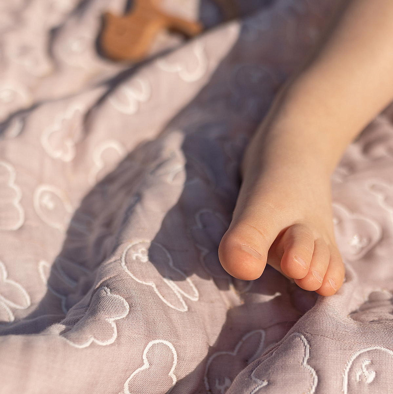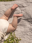 Это красивый и практичный аксессуар, который можно использовать и дома как одеяло, и для пеленания, и на прогулке. Натуральный хлопок Eco Soft Cotton по внешним сторонам пледа деликатно касается кожи ребенка, хорошо пропускает воздух и поддерживает комфортную температуру. Специальный способ создания узора без окрашивания — залог того, что цвет останется неизменным после многократных стирок.