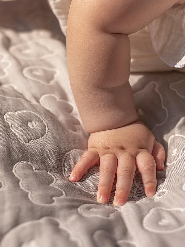 Это красивый и практичный аксессуар, который можно использовать и дома как одеяло, и для пеленания, и на прогулке. Натуральный хлопок Eco Soft Cotton по внешним сторонам пледа деликатно касается кожи ребенка, хорошо пропускает воздух и поддерживает комфортную температуру. Специальный способ создания узора без окрашивания — залог того, что цвет останется неизменным после многократных стирок.