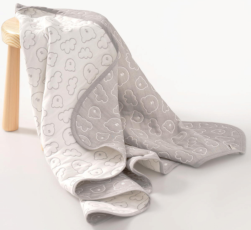 Стильное и практичное решение — двусторонний дизайн пледа. Милые мордашки зверюшек в узоре понравятся и родителям, и малышу.