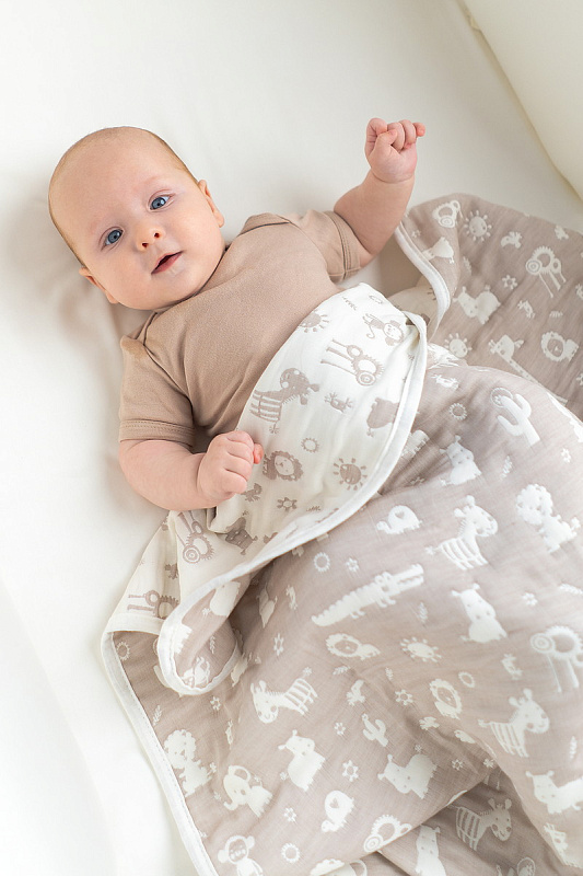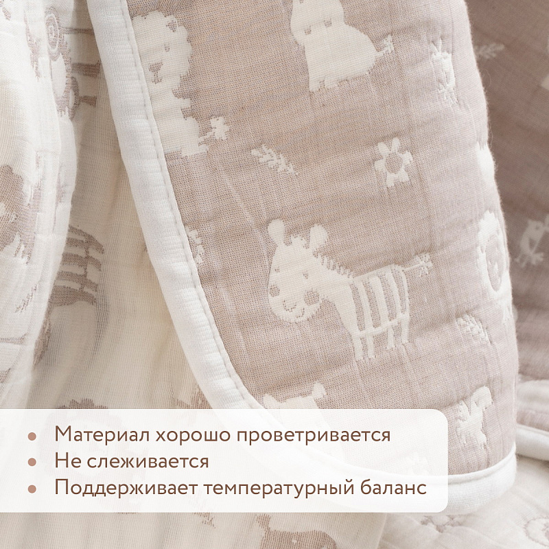 Хлопковый плед можно использовать и дома как одеяло, и для пеленания, и на прогулке. Натуральный хлопок Eco Soft Cotton по внешним сторонам пледа деликатно касается кожи ребенка, хорошо пропускает воздух и поддерживает комфортную температуру. Внутренний слой — воздушное гипоаллергенное п/э волокно. Материал хорошо проветривается, не слеживается, поддерживает температурный баланс.