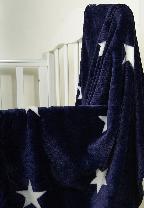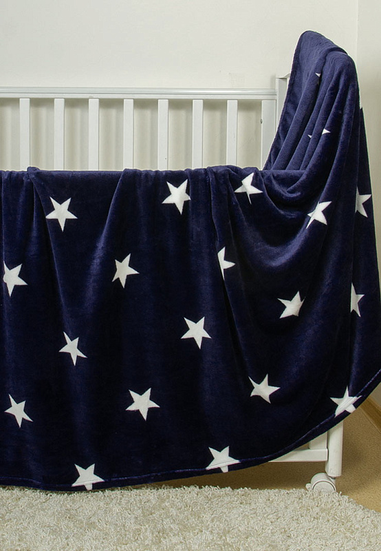 Детский плед Сонный Гномик Белые звезды 100х110 на синем