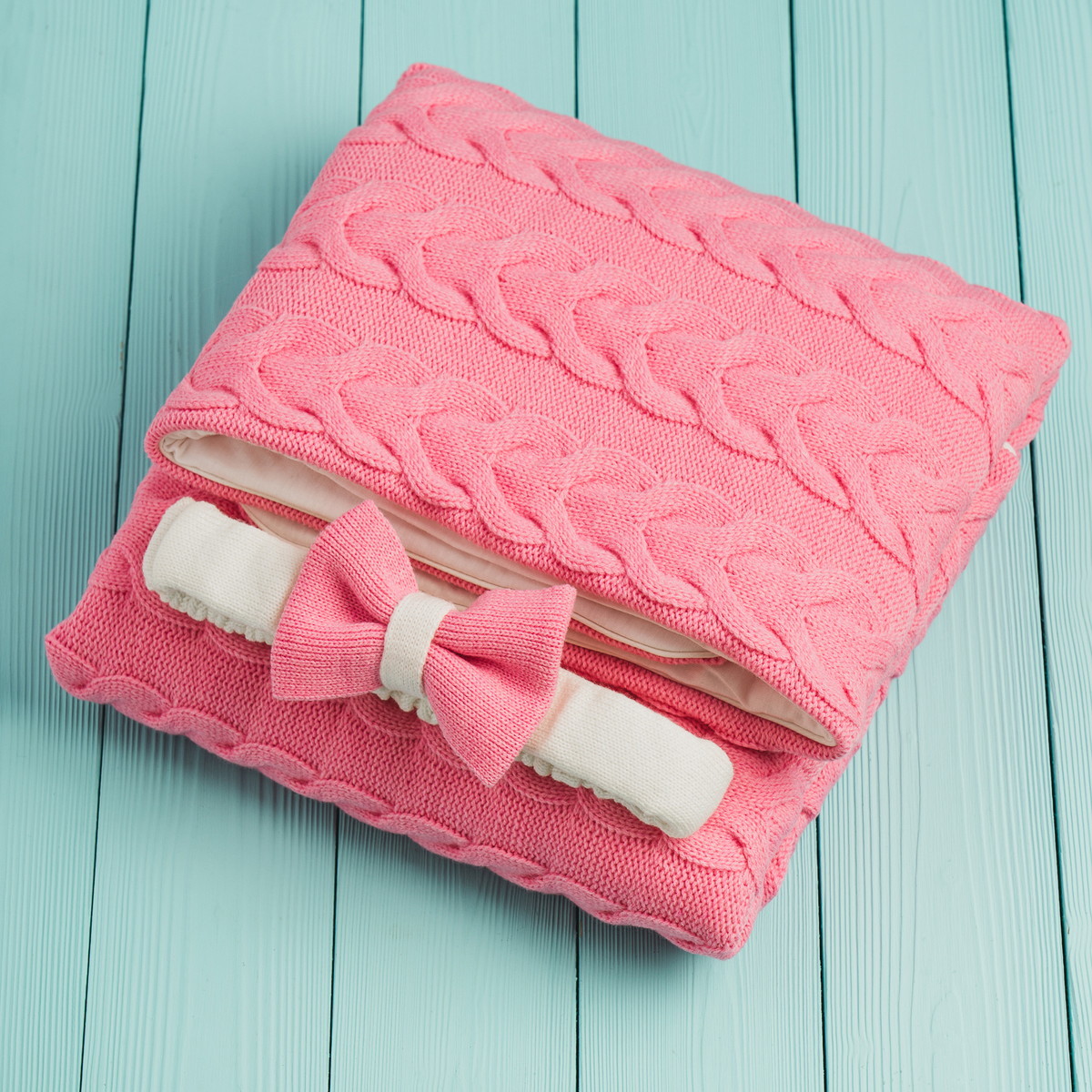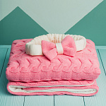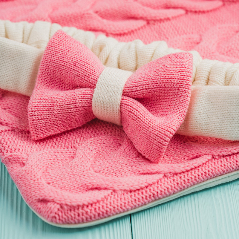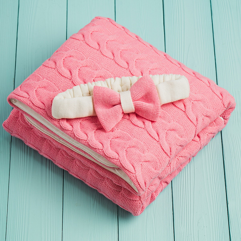 Вязанный плед-конверт незаменимая вещь для прогулок, дома или для выписки малыша из роддома. Утепленная модель выполнена из вязаной ткани, в составе которой 30% шерсть мериноса , 70% акрил, материал гипоаллергенный. Внутри теплый наполнитель из 100% холкона. Утепленный плед-конверт для новорожденного может использоваться как полноценное одеяло, обеспечивая тепло и комфорт вашему малышу дома или на прогулке. Бант на резинке, входящий в комплект, придаст красивый вид, а пояс не даст пледу раскрыться. Небольшой размер пледа удобен как в детской кроватке, так и в коляске.