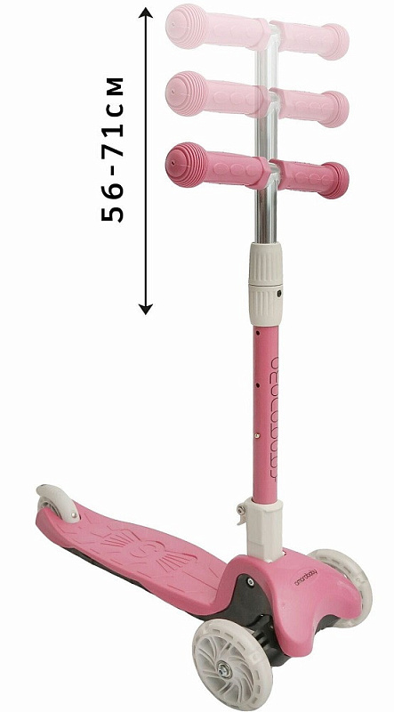 - Регулируемая по высоте ручка от 56 до 71 см. Прорезиненные рифленые ручки руля.