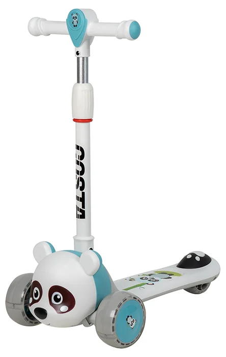 Самокат с мордочкой панды F12, подсветка платформы, светящиеся колеса и музыкальные эффекты.