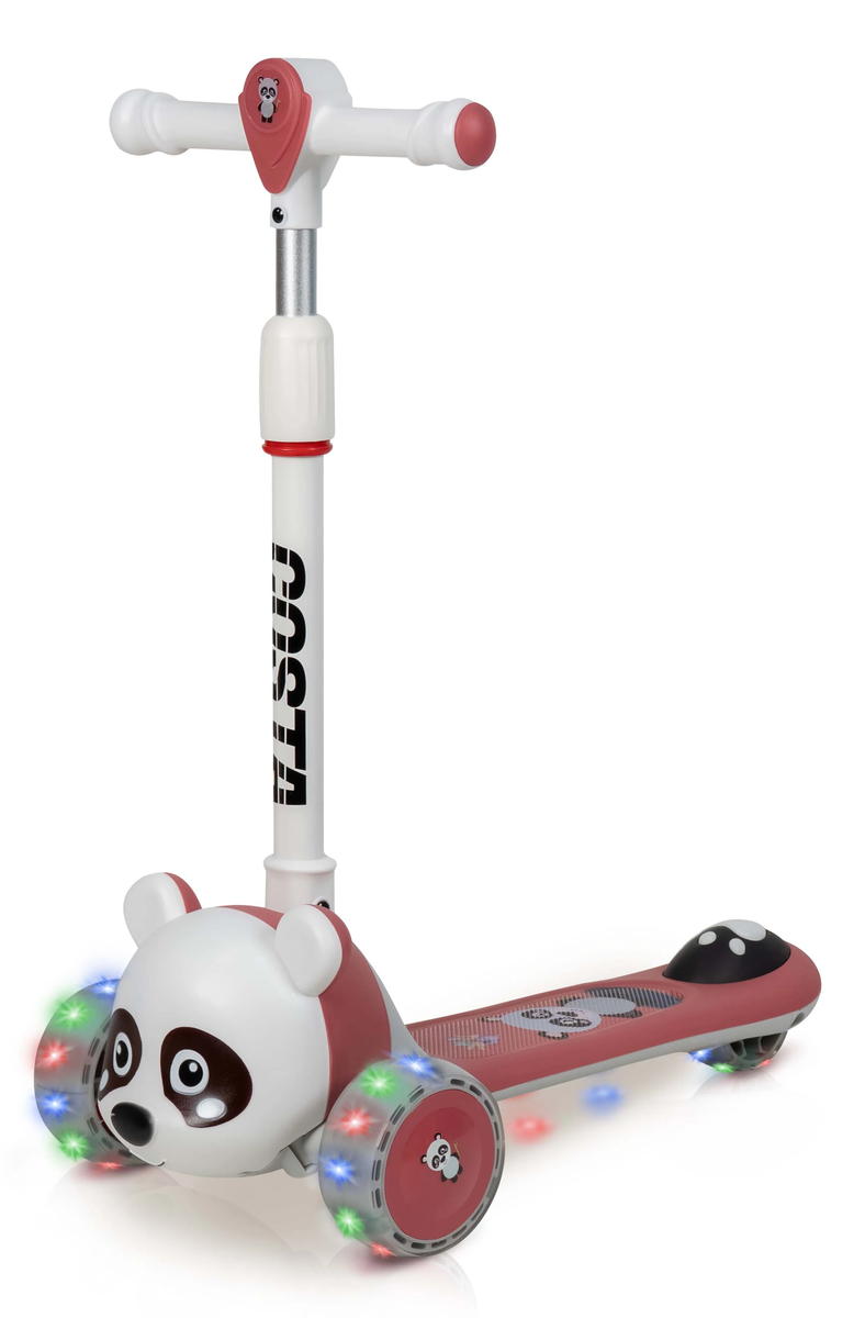 Самокат с мордочкой панды F12, подсветка платформы, светящиеся колеса и музыкальные эффекты.