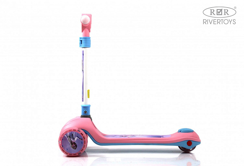 Высота рулевой стойки регулируется от 65 до 80 см, что позволяет использовать самокат детям разного роста. Складная рулевая стойка делает самокат компактным и удобным для хранения и транспортировки.