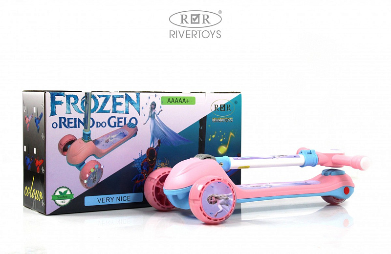 Дизайн самоката яркий и привлекательный, а передние светящиеся колёса добавляют веселья и оригинальности.