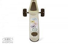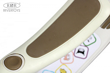 Особое внимание уделено безопасности и комфорту ребенка. Дека самоката выполнена из прочного полипропилена и имеет противоскользящее покрытие, обеспечивающее надежное сцепление с обувью. Сиденье из прорезиненного пластика съемное, регулируется по высоте и вращается, что позволяет ребенку кататься как сидя, так и стоя. Ножной тормоз на заднем колесе обеспечивает надежное и безопасное торможение.