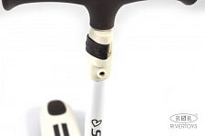 Этот трехколесный самокат предназначен для детей ростом до 150 см и выдерживает максимальную нагрузку до 30 кг. Прочная конструкция, состоящая из алюминиевой верхней части рамы и железного основания, гарантирует надежность и долговечность. Высота рулевой стойки регулируется в четырех положениях (65-82 см), что позволяет адаптировать самокат под рост ребенка. Рулевая стойка также складывается, что облегчает хранение и транспортировку.