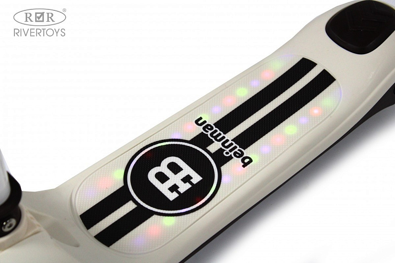 Среди особенностей самоката стоит выделить подсветку деки с возможностью выбора режима – просто подсветка или подсветка в сочетании с музыкой. При длине 64 см, ширине 31,5 см и высоте 65-82 см самокат весит всего 3,85 кг. Произведенный в Китае, этот самокат сочетает в себе доступную цену и высокое качество.