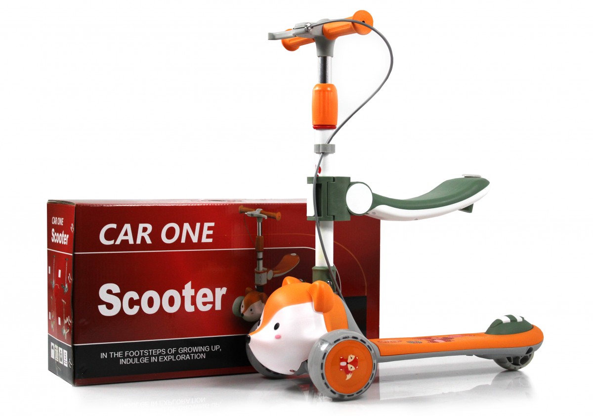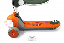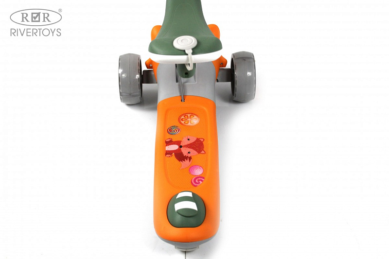 Регулируемая высота рулевой стойки и съёмное сиденье позволяют адаптировать самокат под рост ребёнка.