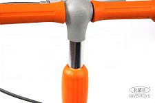Самокат изготовлен из качественных материалов: рама из алюминия и железа, полиуретановые колёса и термопластичные резиновые грипсы.