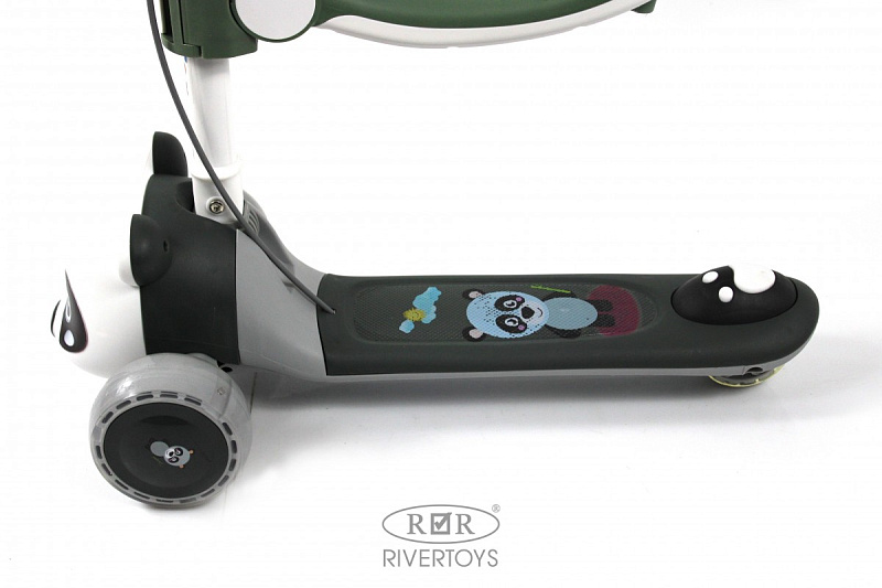 Регулируемая высота рулевой стойки и съёмное сиденье позволяют адаптировать самокат под рост ребёнка.