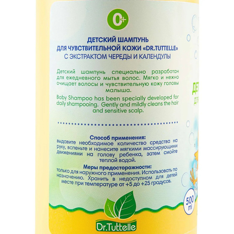 Шампунь для чувствительной кожи с экстрактом череды и календулы Dr.Tutelle, формула "без слез", не содержит мыла и красителей, с первых дней жизни 0+.